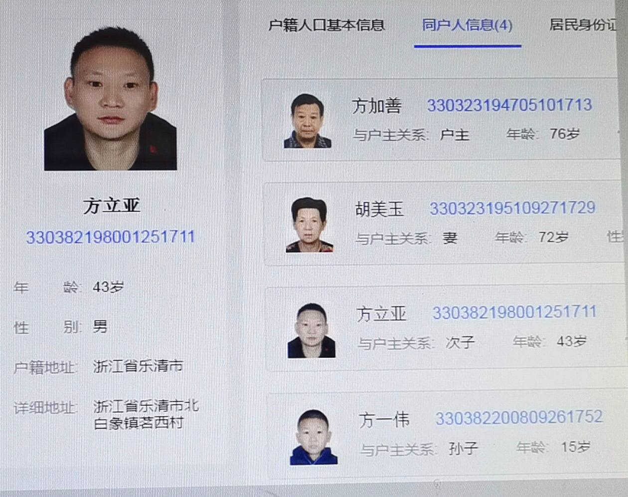 个人的全页户籍查询包括家人